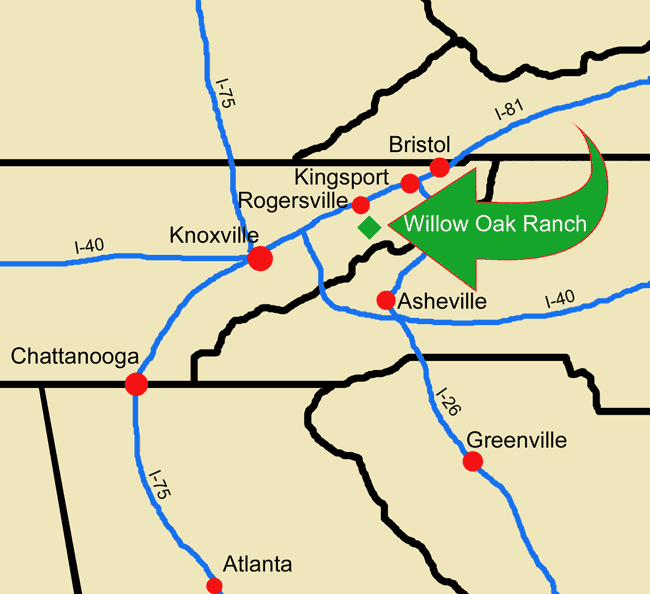 Turn Left onto McKinney Chapel Road, 4.1 miles to Willow Oak Ranch.